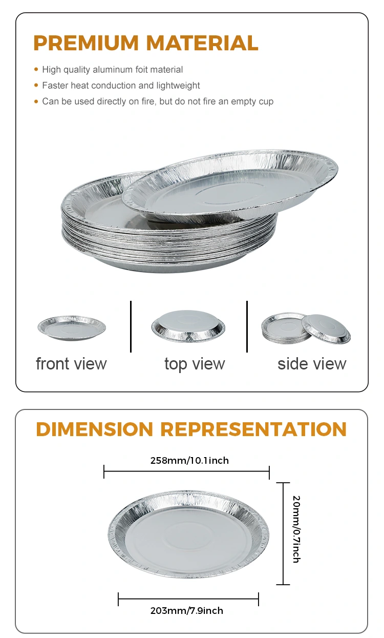 Familiesammenkomster i familiesammenkomster, 10 tommer Pizza Pan Silver Aluminium Folie Container er uden tvivl en uundværlig hjælper. Det kan bruges til at holde hovedretter såsom stegt kylling og gryderetter eller som engangsredskaber til at holde resterende mad, hvilket er praktisk og hurtigt til at reducere byrden af ​​rengøring efter måltider. På grund af dets lette og let at bære egenskaber er det desuden ideelt til udendørs picnic.