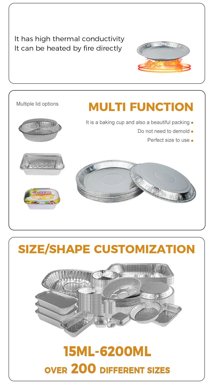 Den trapezformede form af dette produkt tilføjer ikke kun æstetik, men gør det også nemt at stable og opbevare, hvilket effektivt sparer lagerplads. På samme tid gør dette design det mere praktisk at tage ting, og det vil ikke let glide af, når det er i naturen, hvilket i høj grad forbedrer brugen af ​​brugen. Derudover har 10 tommer Pizza Pan Silver Aluminium Folie Container et let design, som er perfekt til udendørs picnic. Du kan tage det med dig når som helst og hvor som helst og let klare enhver lejlighed, hvad enten det er hjemme eller udendørs.