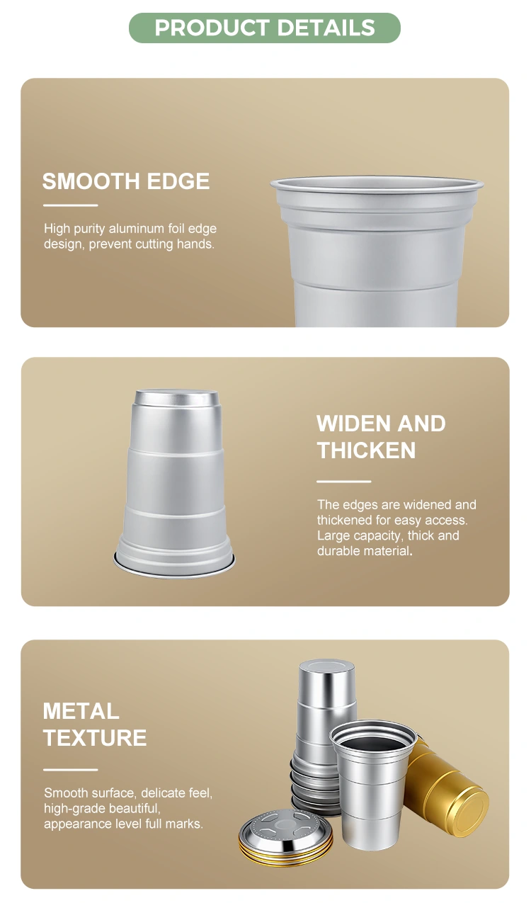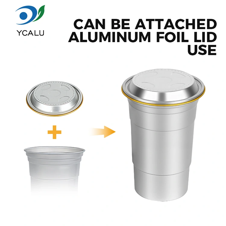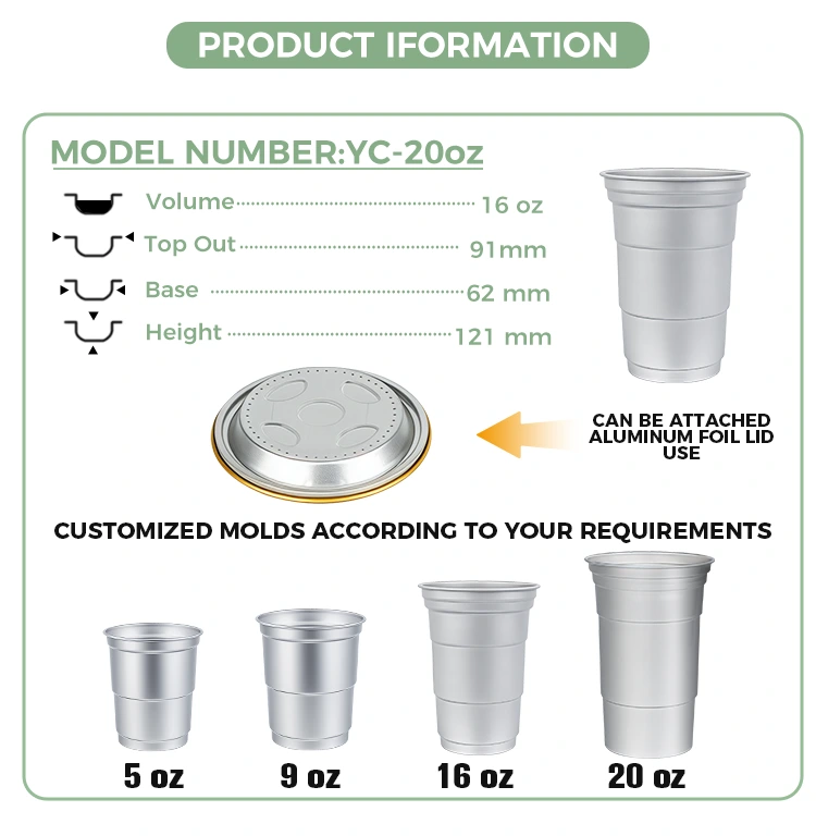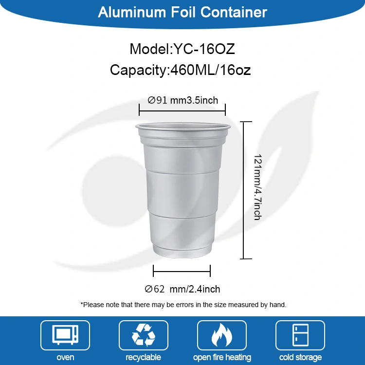 Yunchu er en førende Kina 16oz engangsbrugerdefineret aluminiumsfolie drikkekopproducent. Denne 16 oz engangsbrugsdrikkop af aluminiumsfolie er en 460-milliliter aluminiumsfoliekop, der er velegnet til standarddrikke som kaffe og øl. Det har et standardiseret design og er hovedsageligt rettet mod kommercielle brugere såsom kaffebarer og håndværksbarer med hyppige tilpasningsbehov. Mens den giver effektiv varmeledning og grundlæggende forseglingsydelse, lægger denne 16 oz engangsbrugertilpassede genanvendelige aluminiumsfoliedrikkop også større vægt på hurtige og fleksible varemærkevisuel tilpasningstjenester.