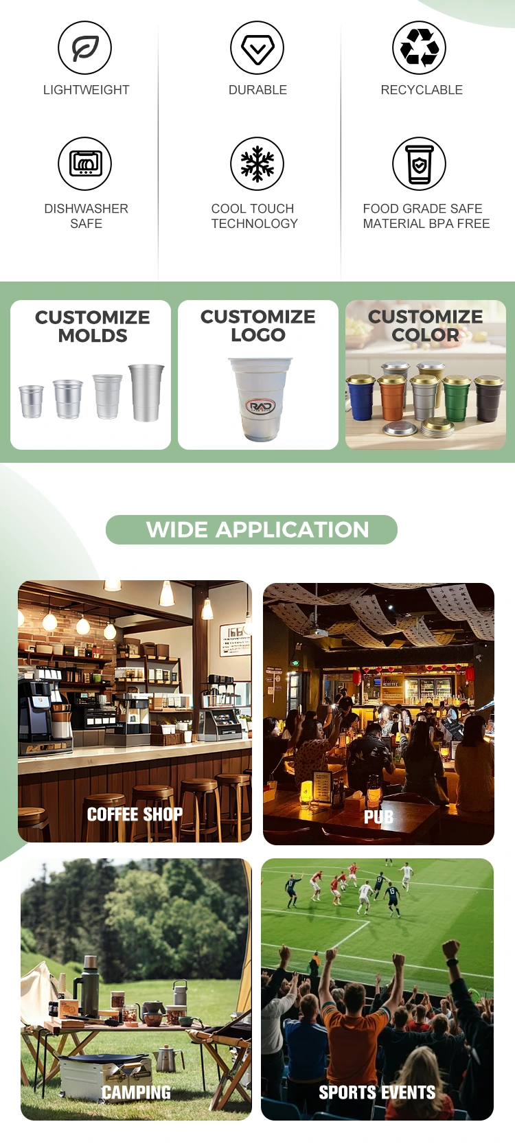 I modsætning til almindelige beholdere er Yunchu 16oz engangsbrugertilpasset drikkekop i aluminiumsfolie specifikt designet til at levere emballageløsninger til mærker i specifikke scenarier. Med sin kompakte størrelse (460 milliliter) henvender denne brugerdefinerede engangsdrikkop på 16 oz brugerdefinerede aluminiumsfolie sig til forbrugsvanerne for instant-drikke til en enkelt servering. Disse 16 oz brugerdefinerede engangs aluminiumsfolie festkopper er særligt velegnede til takeaway, markeder eller campingaktiviteter, ud over dets praktiske funktioner. Primært kan det være med til at øge brandværdien.