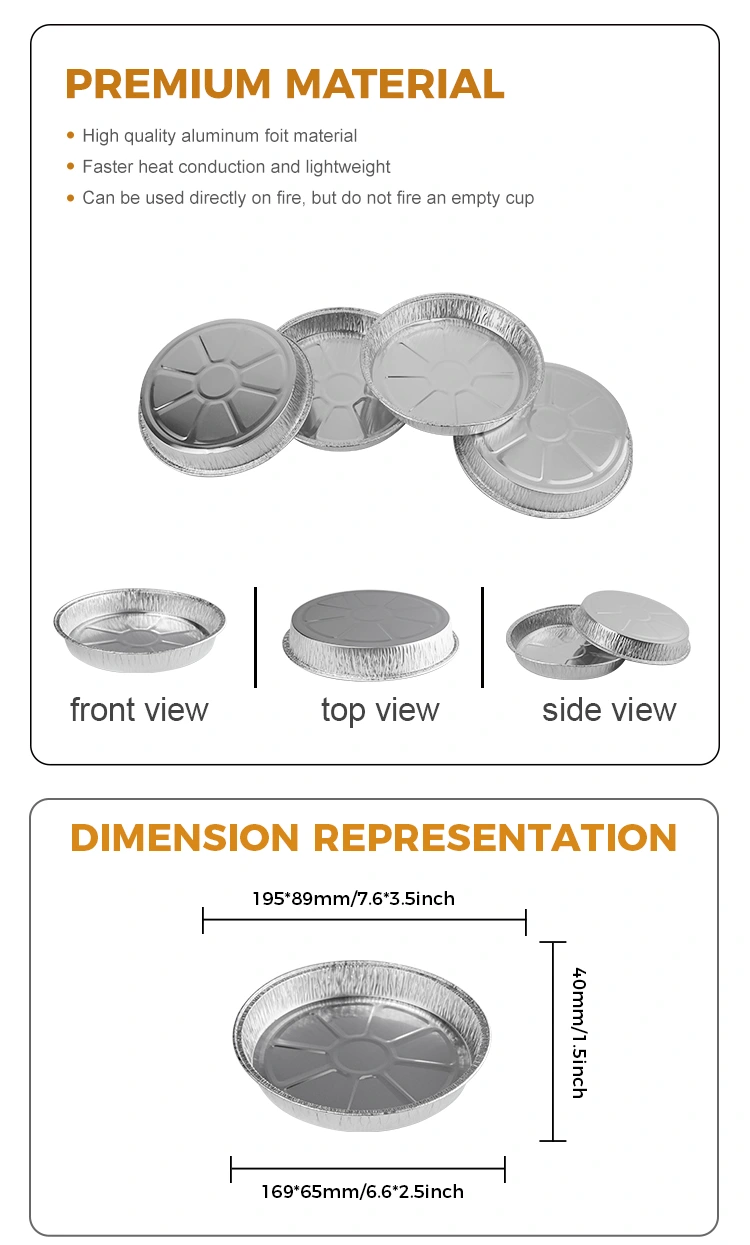Yunchu aluminiumsfolie tilbyder 7 tommer rynket pizza pan sølv aluminiumsfoliebeholdere med modelnummer 5067. Produktet har en øvre diameter på 168 mm (ca. 6,6 inches), en lavere diameter på 145 mm (ca. 5,7 tommer) og en højde på 25 mm (ca. 0,9 inches). Med en kapacitet på cirka 400 ml (ca. 14,1 oz) er den ideel til bagning af pizza uden at klæbe under bagning, let at frigive skimmel og ingen lugt. Derudover forhindrer dets fuldt krympede design mad i at spilde ud, hvilket øger praktisk. Vi kan også levere logo -tilpasningstjenester til at hjælpe dig med at uddybe dine kunders indtryk og forbedre dit brands synlighed.