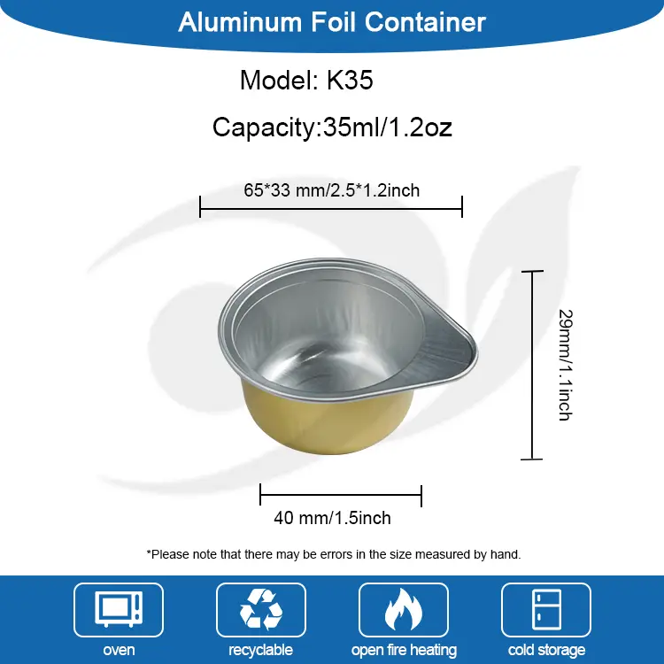 Yunchu aluminiumsfolie leverandør K35 aluminiumsfolie forsegling silikone-sega-fri tom kaffekapsel Top: 65*33 mm, 2,5*1,2 inches, base: 40 mm, 1,5 tommer, højde: 29 mm 1,1 tommer, kan have 35 ml 1 blive manuelt revet af det forseglede aluminiumsfolie låg for at påføre