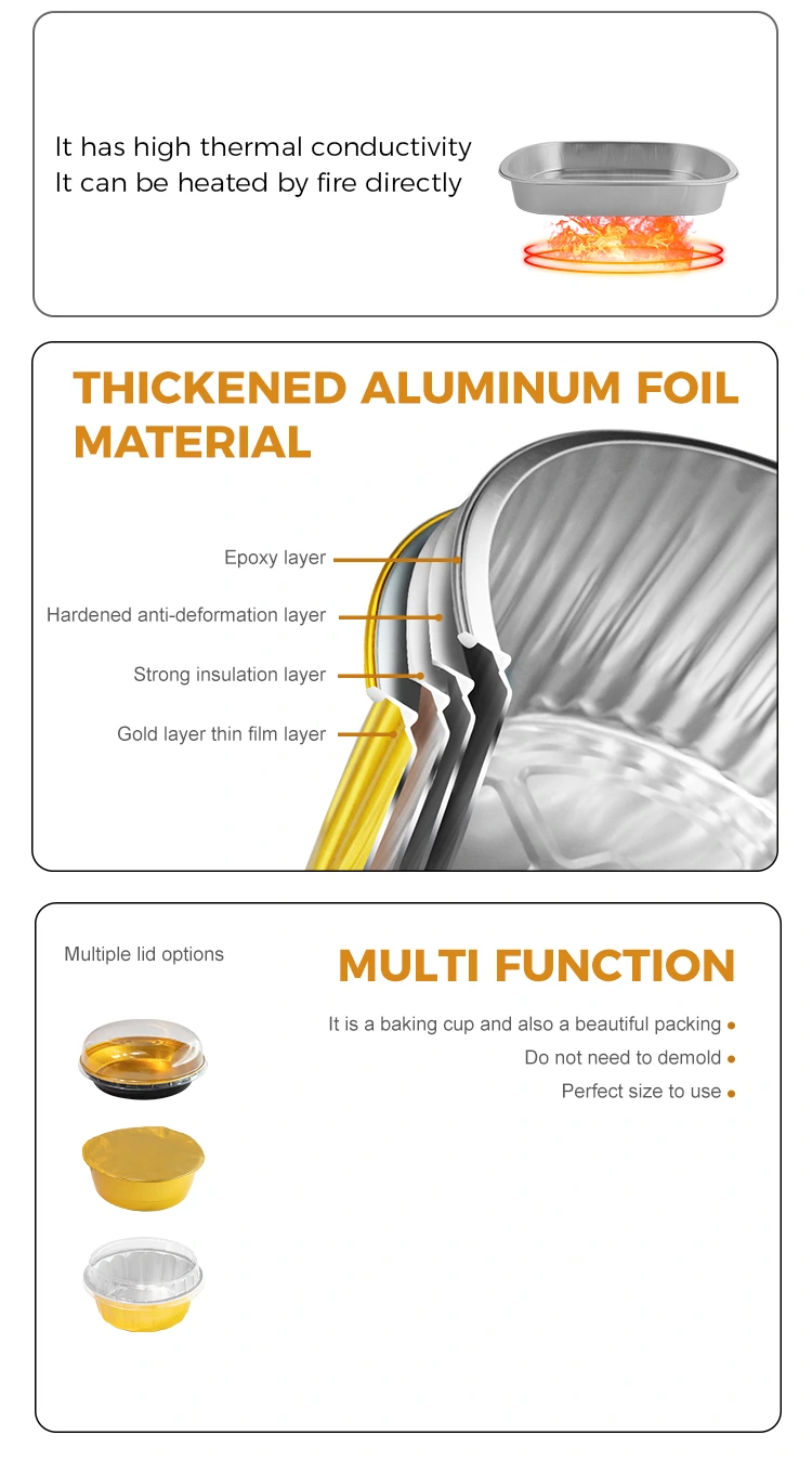 Det er den perfekte emballage til æggetærter, brownies, cupcakes, enkelte skiver pizza eller flakede kager. Alufoliens isoleringsegenskab hjælper med at bevare varmen og den bløde konsistens af kagerne lige efter de er bagt; den bevarer perfekt smagen og er velegnet til takeaway fra bagerier og caféer.