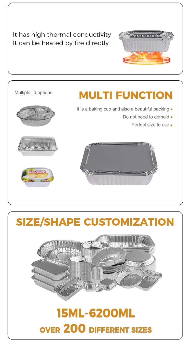 Derudover er denne disponible grill frokostboks sølv aluminiumsfoliebeholder også ekstremt sikker, da den normalt kan bruges under en åben flamme uden at bekymre sig om brandfarer overhovedet. På samme tid giver dens fremragende temperaturmodstand og forsegling også en garanti for sikker transport af mad, hvilket giver forbrugere og kunder mulighed for at bruge den med mere selvtillid.