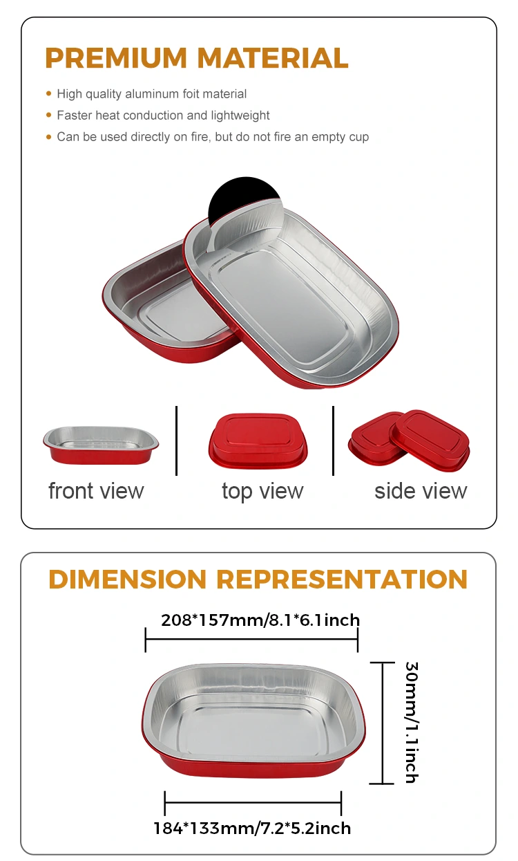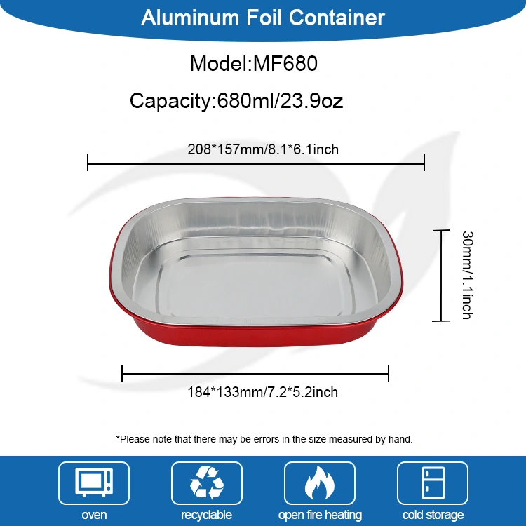 Vi tilbyder flere specifikationer af engangs rød madkasse firkantede aluminiumsfoliebeholdere til dit valg: