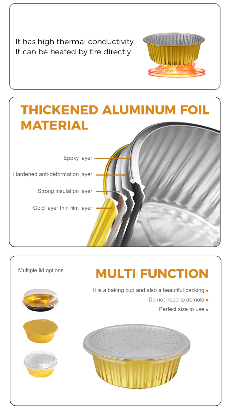 Hot Tags: Engangs runde aluminiumsfoliebeholdere i guld med stor kapacitet