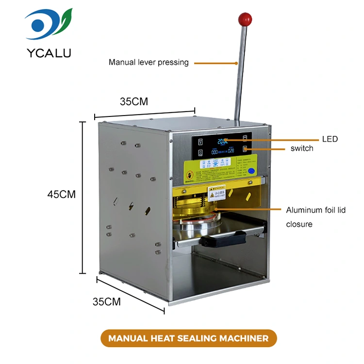 • Manuel varmeforseglingsmaskine med guldbeholdere af aluminiumsfolieManuel varmeforseglingsmaskine med guldbeholdere af aluminiumsfolie