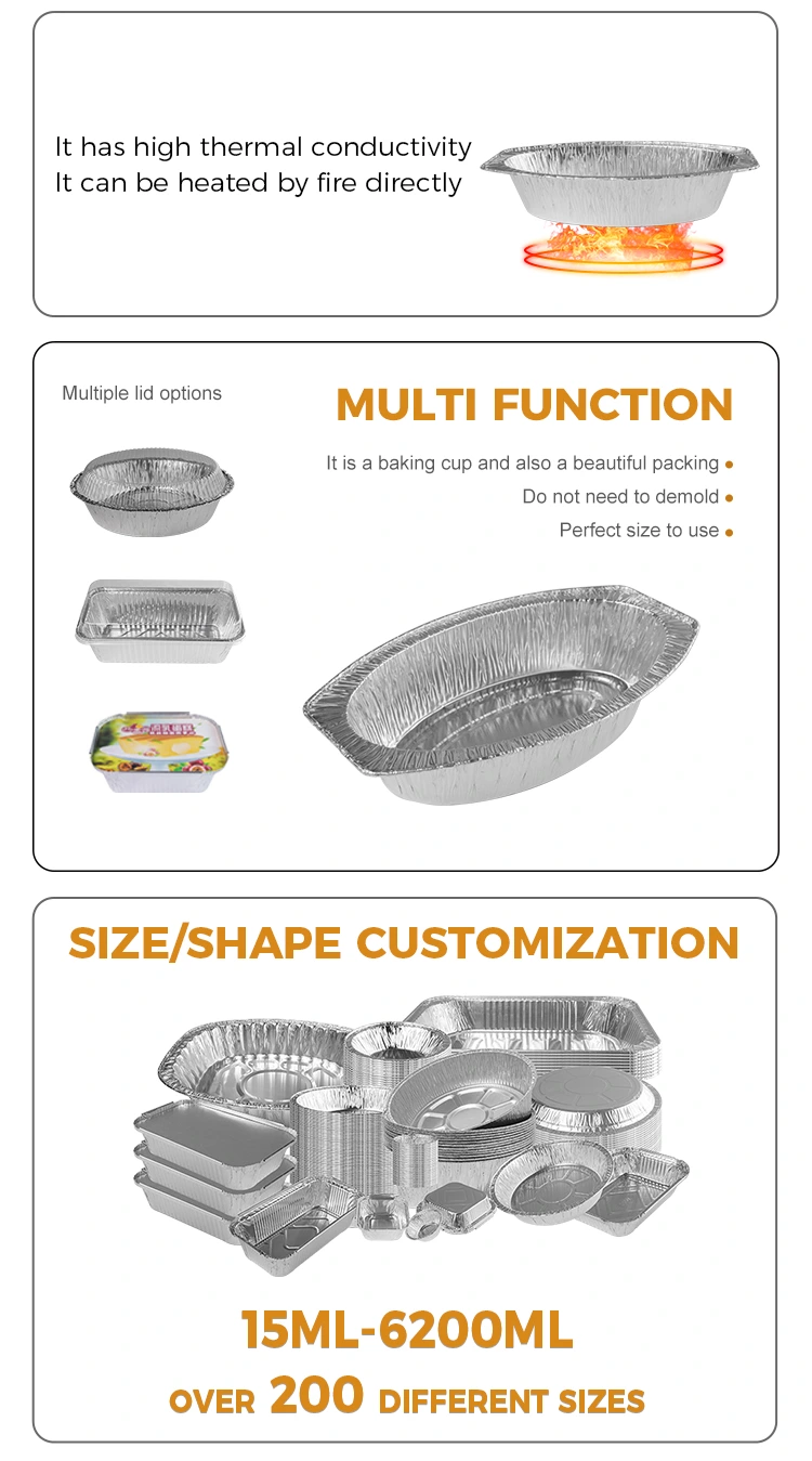 Denne container har en stor kapacitet og er velegnet til opbevaring af en række daglige fødevarer og snacks. Som en engangsartikel er der ingen grund til at vaske, hvilket i høj grad sparer arbejdsomkostninger. Produktet er udstyret med et aluminiumsfoliedæksel og en aluminiumsfolie-varmeforseglingsfilm for at sikre, at der ikke er nogen olie lækage, ingen vand-sivning, høj temperaturresistens og ikke let at deformere, forbedre friskheden og varmebeskyttelsen af ​​mad og gøre transporteffekten bedre. På samme tid overholder produktet ISO9001 og SGS -fødevarekontaktstandarder, hvilket gør det sikkert og pålideligt.