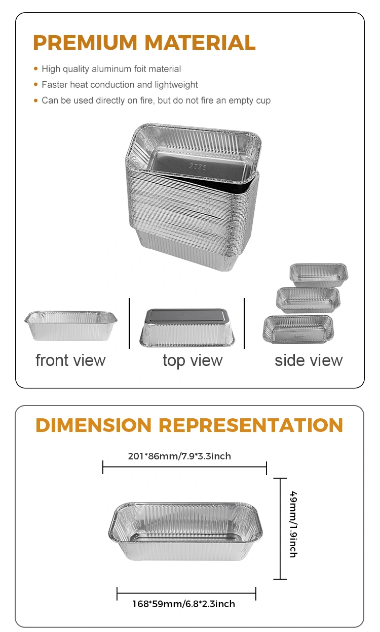 Den 2325 rektangulære Air Fryer takeaway sølvfoliebeholder leveret af Yunchu aluminiumsfoleringsleverandør er velegnet til forskellige lejligheder, hvad enten det er en udendørs grill eller en familiesamling. Forhandlere kan tilpasse mønstre og udskrive dem efter deres behov, hvilket gør disse containere til et unikt valg til takeaway -emballage, som understøtter åben flammeopvarmning og olielampeopvarmning, der udfører varme jævnt, hvilket sikrer, at maden opvarmes jævnt og ikke holder sig til gryden. Det kan bruges straks, selv når den placeres i luften, og det konkave og konvekse design i bunden øger friktionen og forhindrer glidning. Stivenerne på siderne forbedrer produktets robusthed, mens det hæmmende design sikrer en tæt pasform på låget, der effektivt låser fødevarens temperatur.