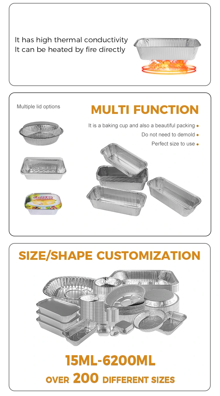 Yunchu Aluminiumsfolie Leverandør Model 2325 Rektangulær Air Fryer Takeaway Silver Aluminium Folie Containere Højkvalitets aluminiumsfoliemateriale er fortykket og ikke let at bryde, og kan opvarmes over en åben flamme, er denne aluminiumsfoliebeholder ikke kun smuk i udseende, men også meget praktisk. Det kan modstå bagning af høj temperatur, ikke let at brænde eller deformere bunden, og design af bunden er også smukt og elegant, hvilket effektivt kan forhindre mad i at klæbe fast. Derudover gør dets højsidede design aluminiumsfolie-kombinationen mere stabil og lettere at bruge. Uanset hvilken størrelsesspecifikation du vælger, tilpasser denne aluminiumsfoliebeholder perfekt til forskellige grydestørrelser, der serverer dine forskellige behov. For at give flere forbrugere mulighed for at nyde produkter og tjenester af høj kvalitet, leverer vi en række størrelsesspecifikationer at vælge imellem og kan tilpasse mønsterudskrivning i henhold til dine behov for at imødekomme personlige behov. Med en enkelt MOQ på kun 1000 stykker er købsprocessen enkel og hurtig, og omkostningerne er ekstremt høj. Hvis du har spørgsmål eller har brug for yderligere forståelse af vores produkter, er du velkommen til at kontakte os, vi vil være glade for at tjene dig.