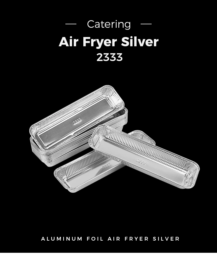 • Rektangulær brød Air Fryer sølv aluminiumsfoliebeholdereRektangulær brød Air Fryer sølv aluminiumsfoliebeholdere