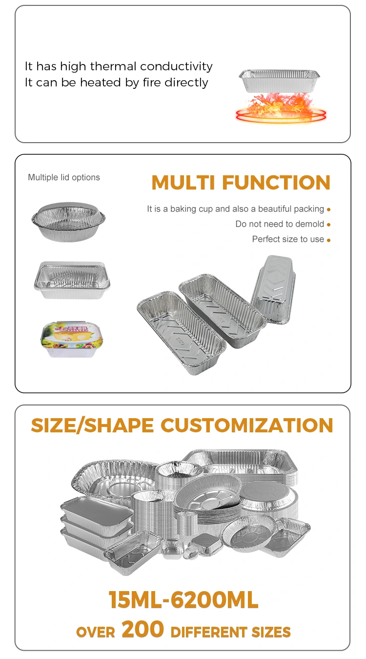 Den rektangulære brødbakke bageplade sølv aluminiumsfoliebeholdere leveret af Yunchu aluminiumsfoleringsleverandør har et langvarigt og resistent design, der forbliver stabilt, selv i lyset af åbne flammer med høj temperatur, hvilket sikrer, at dine delikatesser ikke er beskadiget på nogen måde. Derudover er vores containere omhyggeligt designet med hævede sektioner, der effektivt forhindrer suppe i at strømme ud, mens de forhindrer mad i at klæbe, så du kan nyde hver bid let. De slanke kanter på beholderen er designet til at være både æstetisk tiltalende og funktionel og undgå risikoen for nedskæringer under brug. Det indadgående foldkantdesign er endnu mere intimt og forhindrer forbrændinger, samtidig med at det sikres brugen af ​​brugen. Rektangulær brødbakke bagepan sølv aluminiumsfoliebeholder kan være i direkte kontakt med mad, opfylde fødevaresikkerhedsstandarder. Desuden er vores produkter engangs, hvilket sparer problemer med rengøring, og aluminiumsfolieboksen kan også genanvendes for at opnå et grønt forbrug. Yunchu aluminiumsfolie overvåger strengt hver produktionsproces for at sikre, at alle produkter opfylder nationale sikkerhedsstandarder. Vi har opnået en række internationale certificeringer, herunder det nationale sikkerhedscertifikat for aluminiums mademballagematerialer, tysk ERP -certificering, EU SGS -certificering og ISO9001 -certificering.