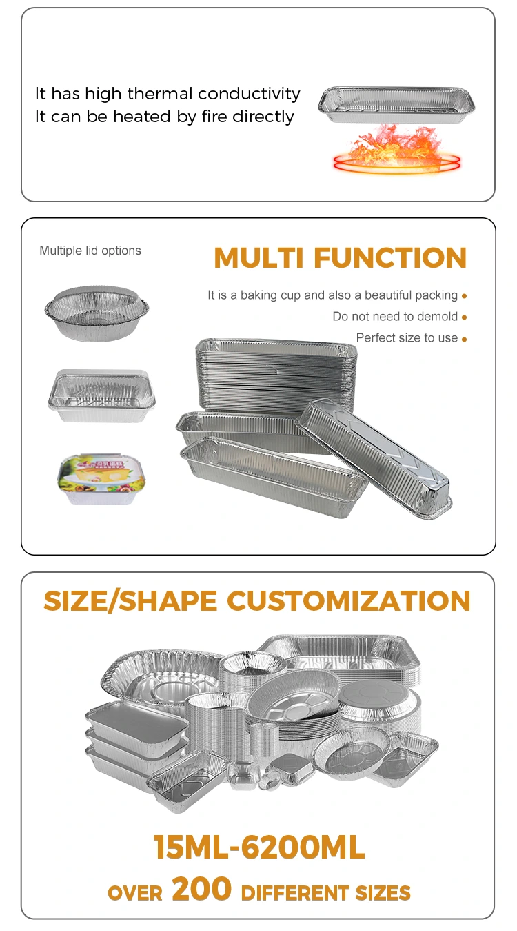 Yunchu aluminiumsfolie leverandør rektangulær brødbakke bage sølv aluminiumsfoliebeholdere, en række forskellige opvarmningsmetoder, du kan nyde glæden ved at bage når som helst, mere effektiv isolering og friskhed, opgraderet og fortykket design, udvalgte høje kvalitetsmaterialer til miljøbeskyttelse og hygiejne, fødevare-grade aluminumfoli, integreret størhed Ledning, bagning er ikke let at svulme bunden, mad er bedre demoldet, produktet er vidt brugt inden for grill og bagning, især velegnet til camping, bageri, grillboder, afhentningslevering og sushi -restauranter og andre lejligheder. Det er designet til at imødekomme de praktiske behov hos de fleste husstande og butikker.