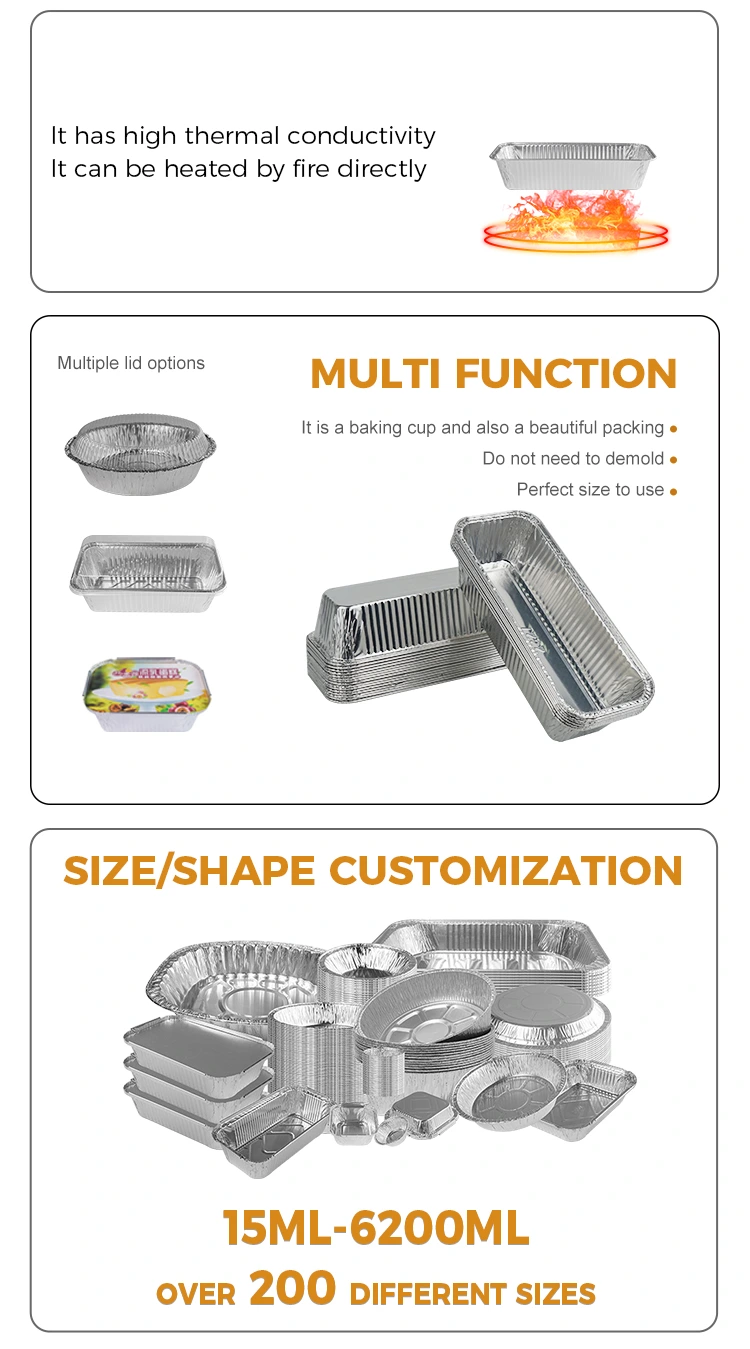 Den rektangulære brødbakke sølv aluminiumsfoliebeholdere leveret af Yunchu aluminiumsfoleringsleverandør er lavet af materialer af fødevarekvalitet og er velegnet til forskellige applikationsscenarier. Dette produkt er især velegnet til grillning og bagningsmæssige formål, såsom at fremstille lange brød eller bagning. Uanset om det er til kulgrillning eller som en afhentningsfelt, er det perfekt til brug.