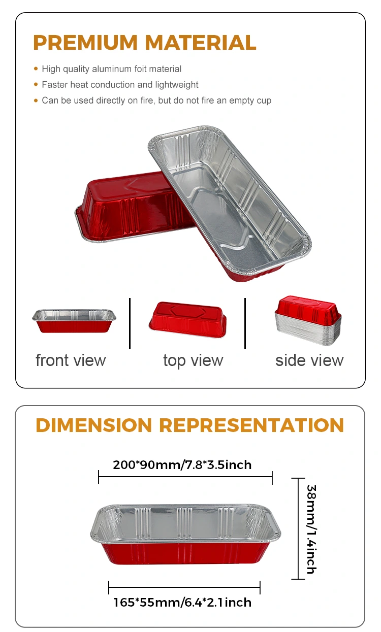 • Rektangulær rød bageri catering Sølv aluminiumsfoliebeholdereRektangulær rød bageri catering Sølv aluminiumsfoliebeholdere