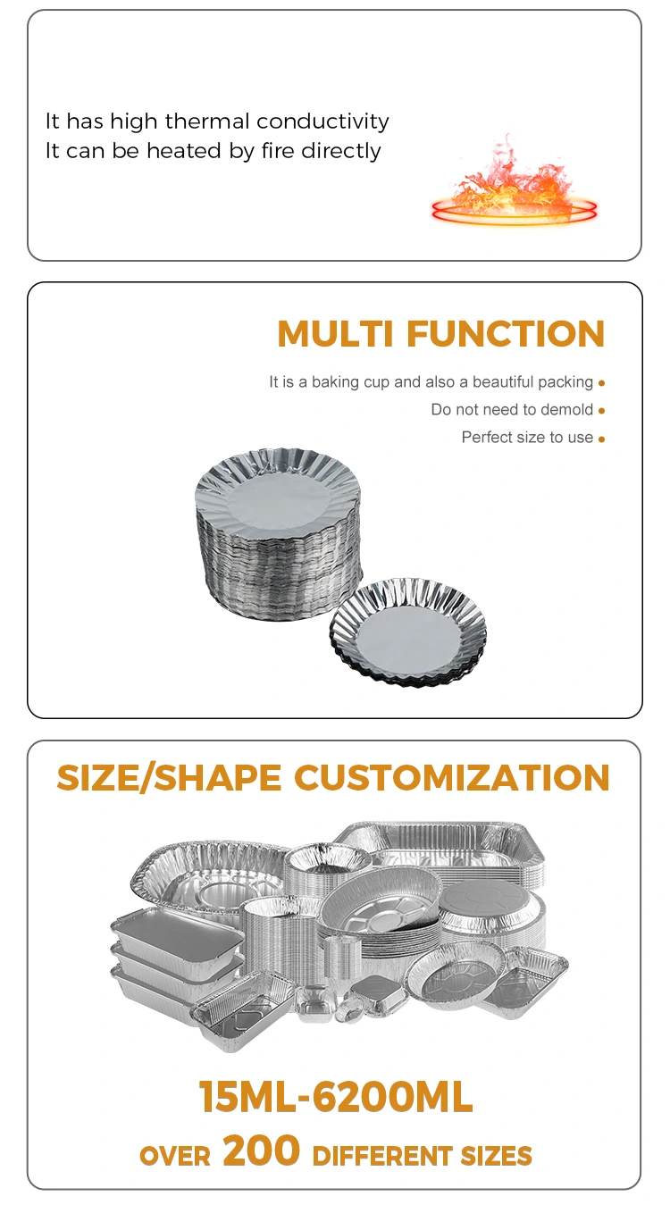 Rund bagning af kage tin med sølv aluminiumsfolie madbeholder leveret af yunchu aluminiumsfolie leverandør, lavet af sølv aluminiumsfolie, er designet til at gøre din mad til både lækker og visuelt tiltalende. Hvordan kan du forhindre, at din mad bliver forurenet, mens du stadig ser mere raffineret og smuk ud? Svaret er at bruge en rund kageformfolie -mat!
