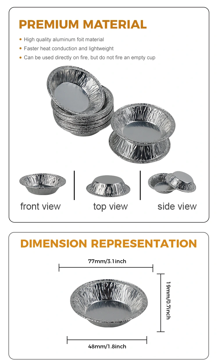 Er materialet sikkert og pålideligt? Er det let at frigive skimmel? Er det let at bruge? Denne runde syrlige bakke sølvfoliebeholder passer perfekt til alle dine behov!