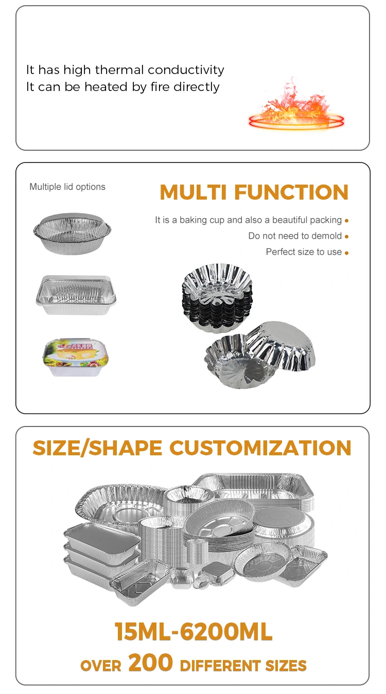 Yunchu aluminiumsfolie leverandør rundt æg terte legetøj bage sølv aluminium folie madbeholder. Denne ægtertebakke ser ikke kun smuk ud, men lægger også særlig vægt på praktisk og sikkerhed. Denne æg-tærtebakke har et skridsikre kopdesign med en skridsikre struktur, der øger friktion og forhindrer effektivt mad i at glide af, hvilket gør dine bagesultater mere stabile. For det andet kan dens Lace Cup-munddesign foldes og opbevares, hvilket er både rumbesparende og bærbart, hvilket gør det ideelt til familier eller små catering-virksomheder. Ægge-tærtebakken er lavet af aluminiumsfolie af fødevarer, der dannes på én gang og ikke behøver at rengøres, hvilket i høj grad forbedrer effektiviteten af ​​brugen. Det er velegnet til alle slags køkkener, hvad enten det er bagt tærter, kager, æggeblomme kager, skålkager, det kan præsenteres perfekt. Denne æg -tærtebakke har passeret den tyske ERP -certificering, EU SGS -certificering og ISO9001 -certificering af kvalitetsstyringssystemer, hvilket sikrer sikkerhed og miljøbeskyttelse af produktet. Vores råmaterialer er alle sunde og miljøvenlige fødevarekvalitetsmaterialer, der opfylder internationale fødevaresikkerhedsstandarder, så du kan spise med selvtillid.