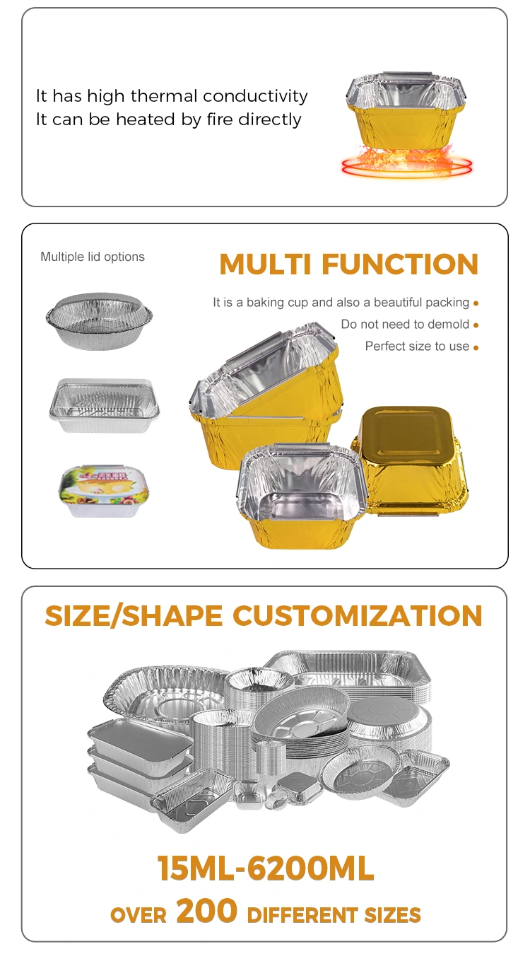 Yunchu aluminiumsfolie firkantet bagning ovn sølv aluminiumsfolie containere beskytter er ikke-vask og flerfryd, vandtæt og olie-dræning, ingen grund til at rengøre, ovn, luftsteger, grill, dampende specielt, fortykket materiale, der gentagne gange bruges uden deformation, materialet, er tyk og kan rengøres med vand, gentagen brug uden tryk, kan være matchet med en række forskellige fødevarer, sådan bager, størrelsen, gæl frysetørrede, dampede æg, budding bagning, frugtsalat osv., Sikker til at komme ind i materialer til madkontaktkontakt, Yunchu Strictly følger kravene til at vælge fødevarekvalitets sundhedsmaterialer engros, det vil sige, forme er også emballage, aluminiumsfoliedækket kombination af engrosbestillingstjeneste accepterer også ordrer, med en enkelt brugerdefineret moq af 3000 stykker.