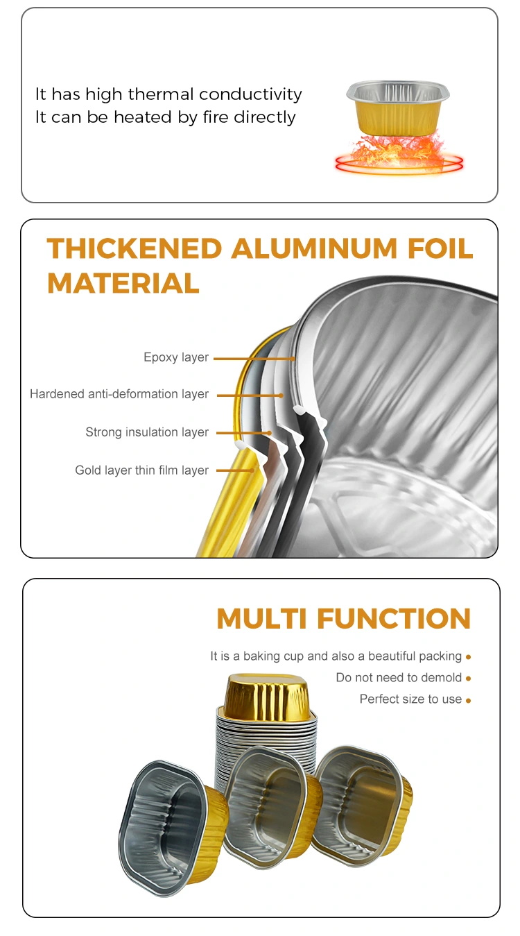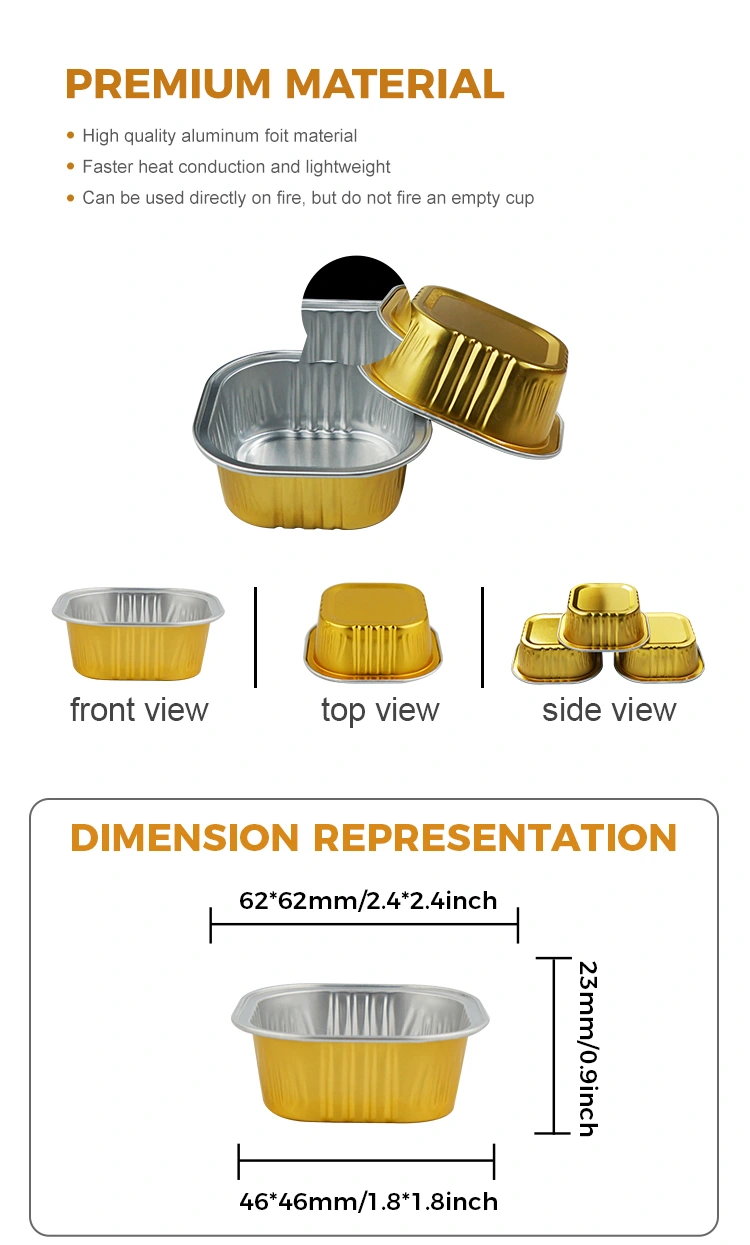 Firkantede dessertbagekopper Smoothwall aluminiumsfoliebeholdere har stærk tykkelse, stærk korrosionsbestandighed, deformeres ikke let og kan være i direkte kontakt med fødevarer. Alle produkter har bestået ISO 9001 kvalitetsstyringssystem certificering og er produceret i nøje overensstemmelse med FDA fødevarekontakt materiale sikkerhedsstandarder. De er garanteret giftfri og lugtfri og kan bruges med tillid.