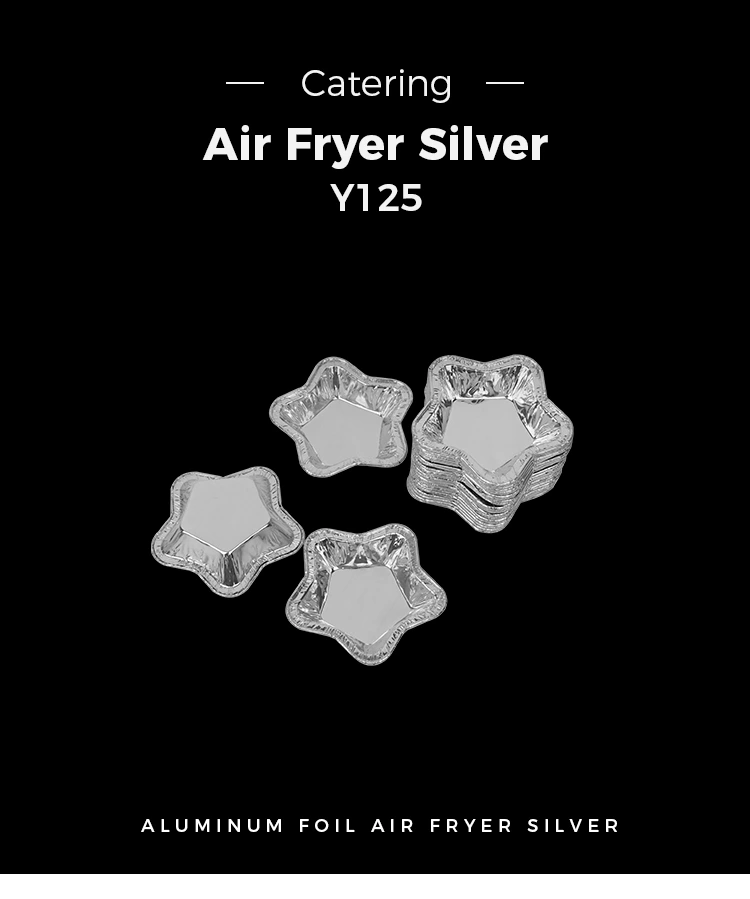 De stjerneformede tærtekopper af aluminiumsfolie er lavet af sølv-aluminiumsfolie og har høj temperaturbestandighed og forbliver stabile mellem -20°C og 300°C. De er velegnede til bagning og luftfriturebrug og kan forhindre skader på apparatets indvendige vægge. De er til engangsbrug, hvilket gør dem praktiske, da der ikke kræves rengøring.
